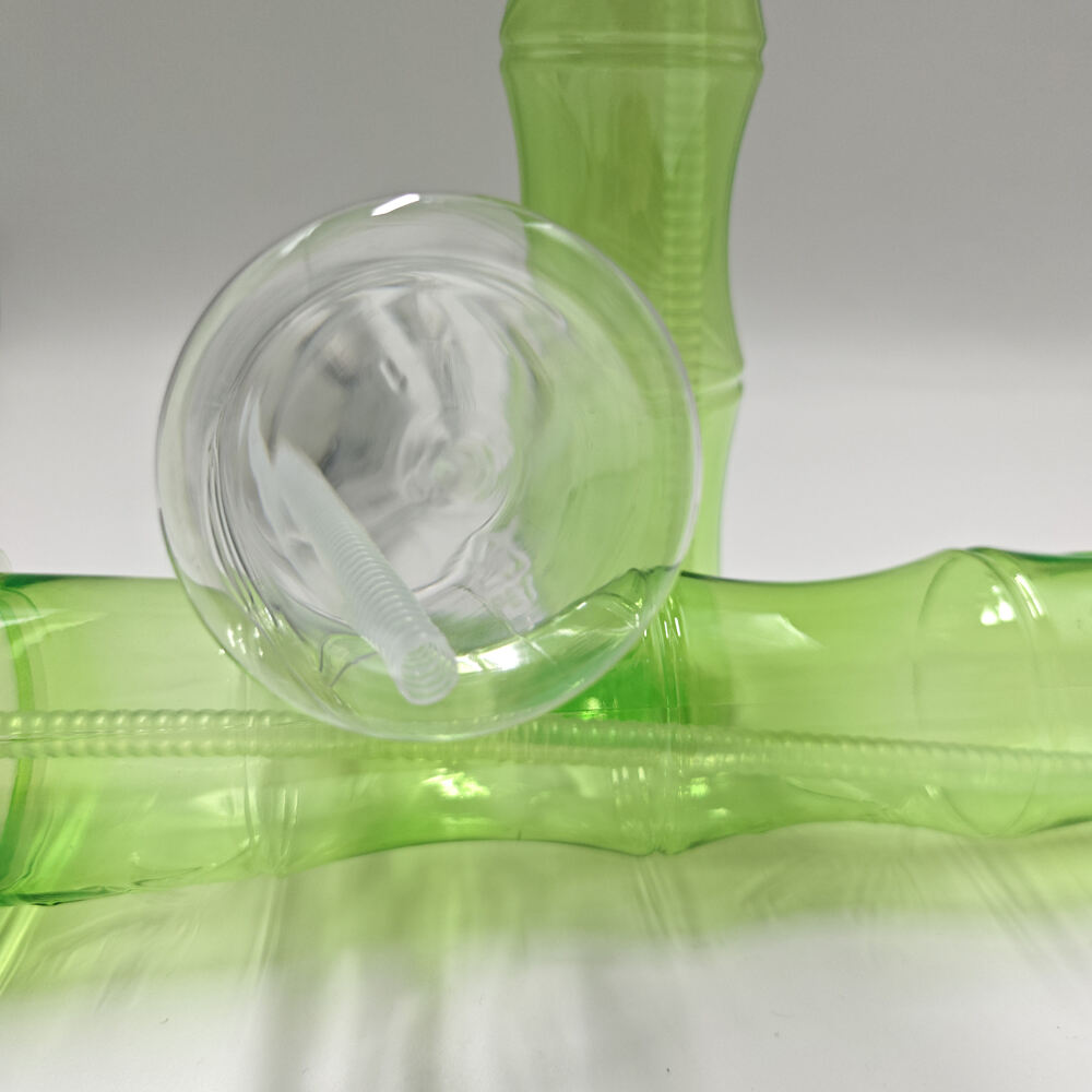 16oz Plastic green bamboo shaped yard cups with 3D panda cartoon lid