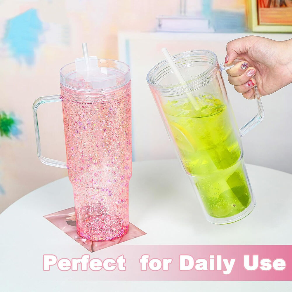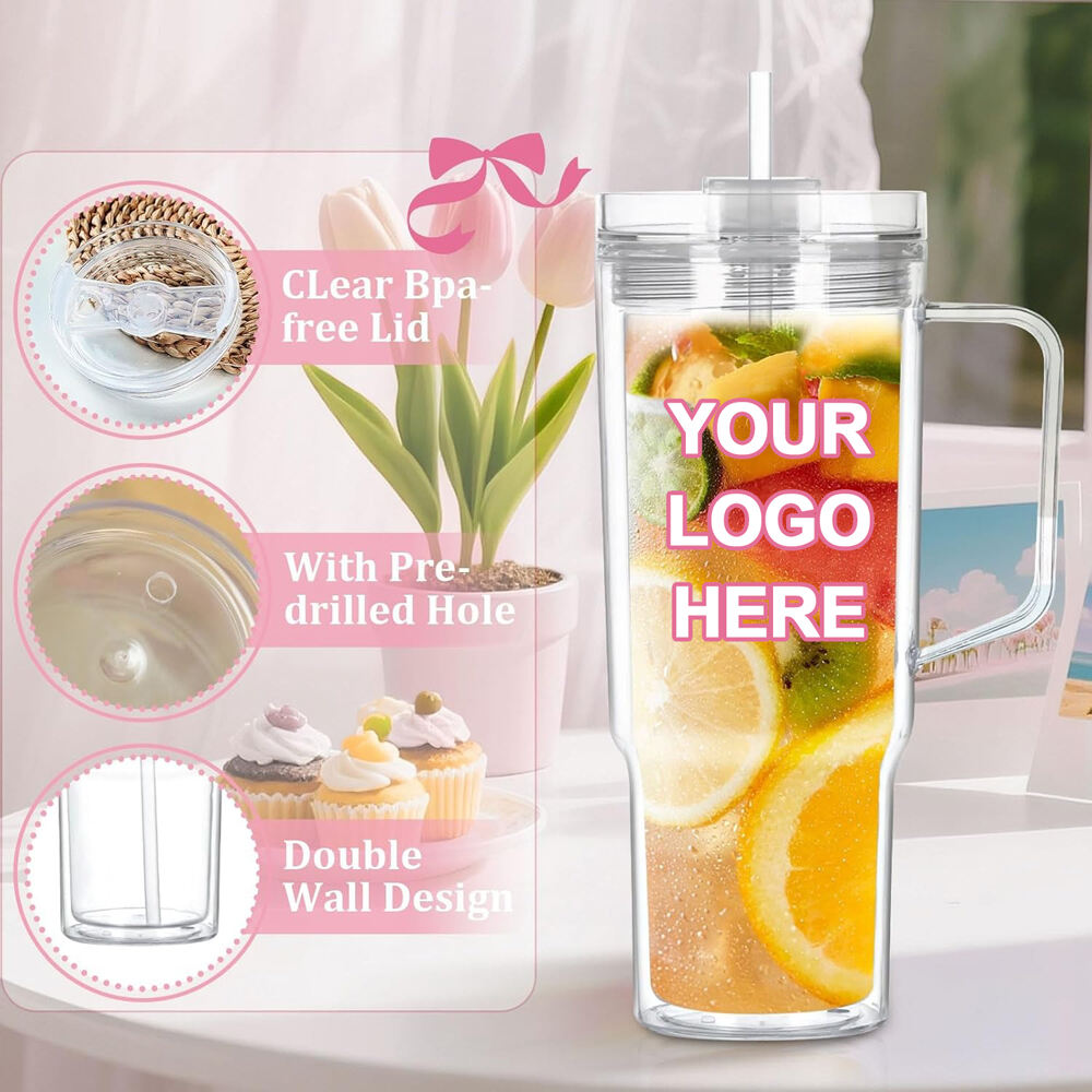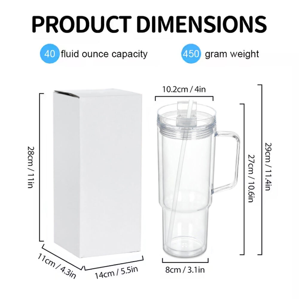 Elevate your drinkware collection with our 40oz snowglobe tumbler with handle - the perfect blend of customization and functionality. Made from premium food-grade acrylic/PS material, this BPA-free tumbler features a pre-drilled hole for adding glitter and creating your own magical snowglobe effect. The double-wall design keeps drinks at the perfect temperature while preventing condensation, making it both beautiful and practical.