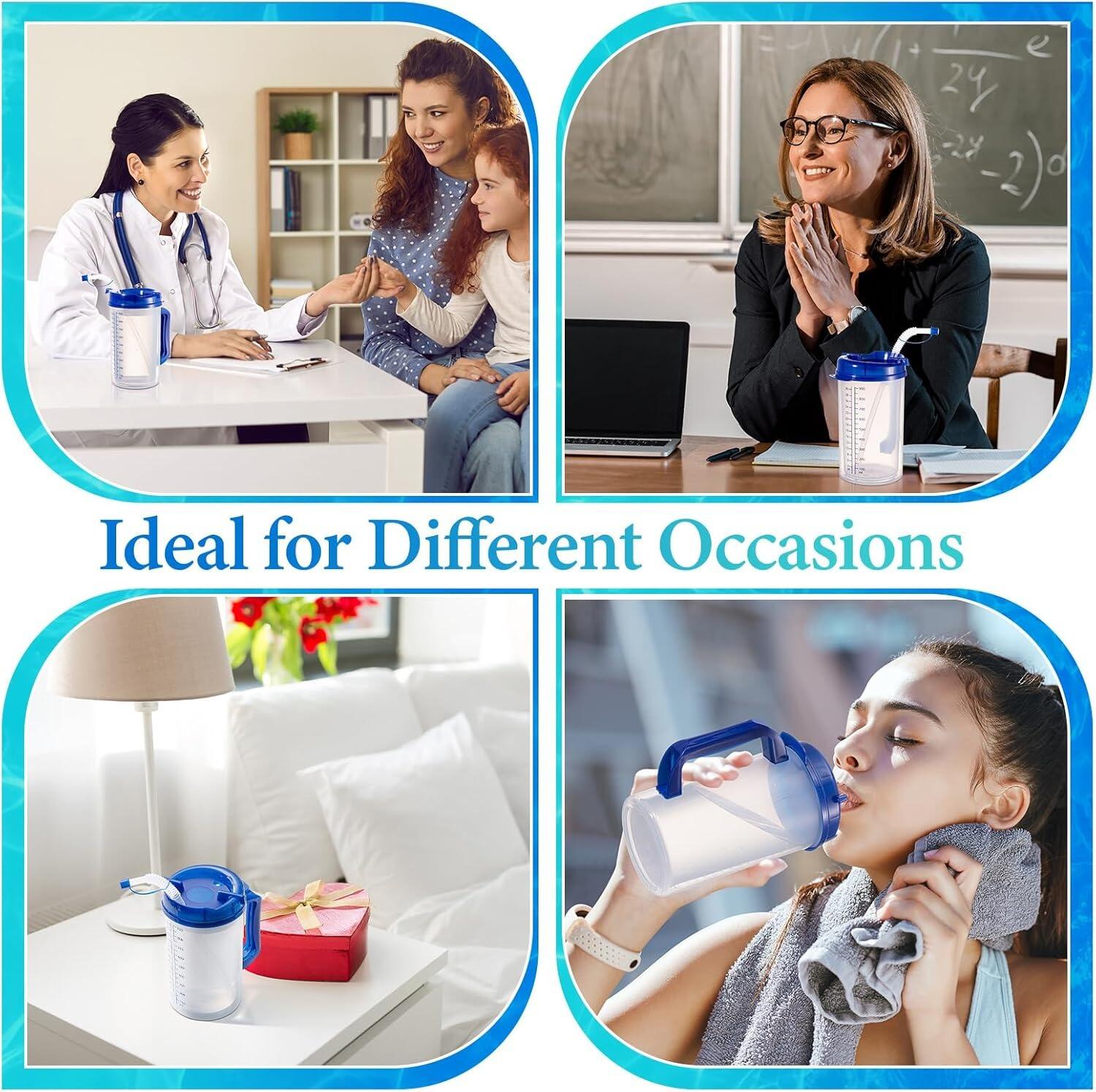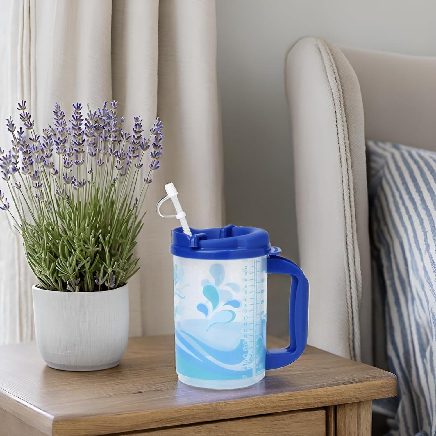 קנקן בית חולים בן 32 אונס, כוס מבודדת עם קיר כפול, עם שואבה ומכסה