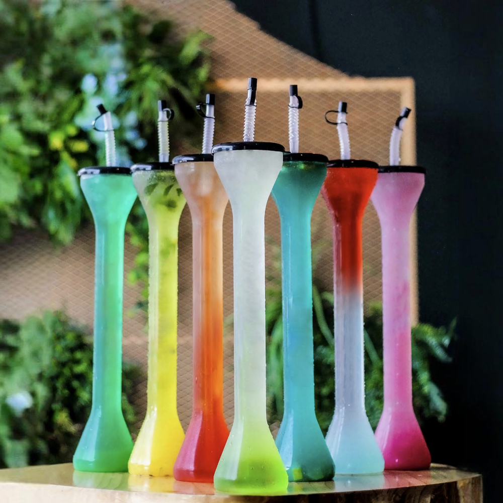 כוסות יארד צינוריות 24 אונקיות של Charmlite לקוקטלי דקירי, סלושי ומשקאות קפואים עם מכסה ומיתר