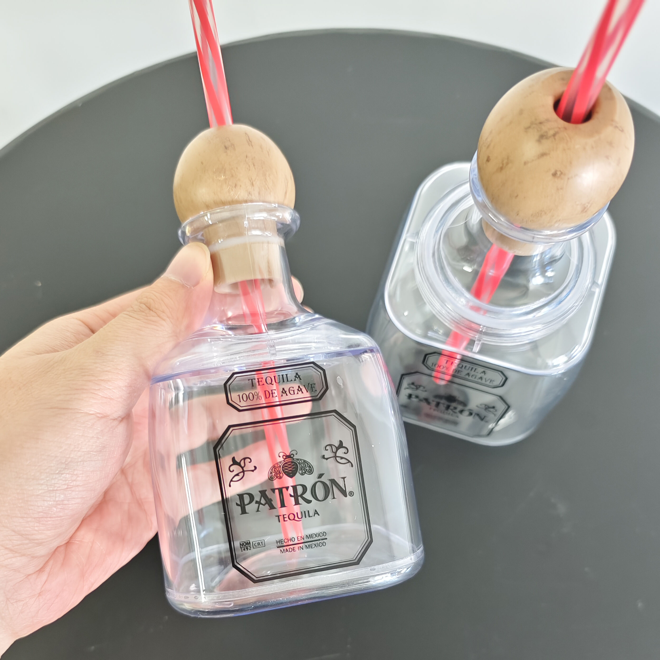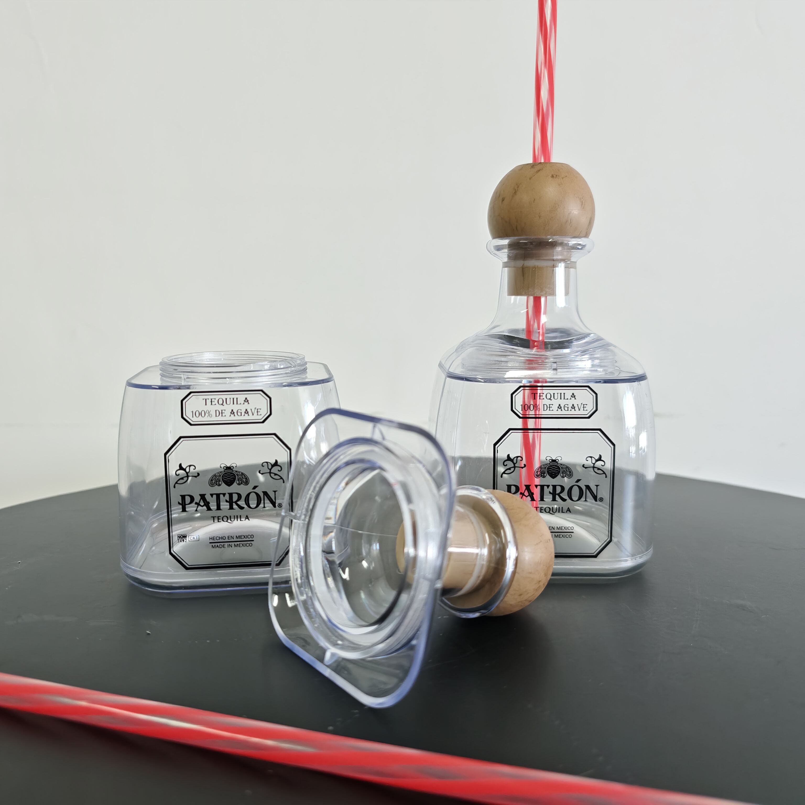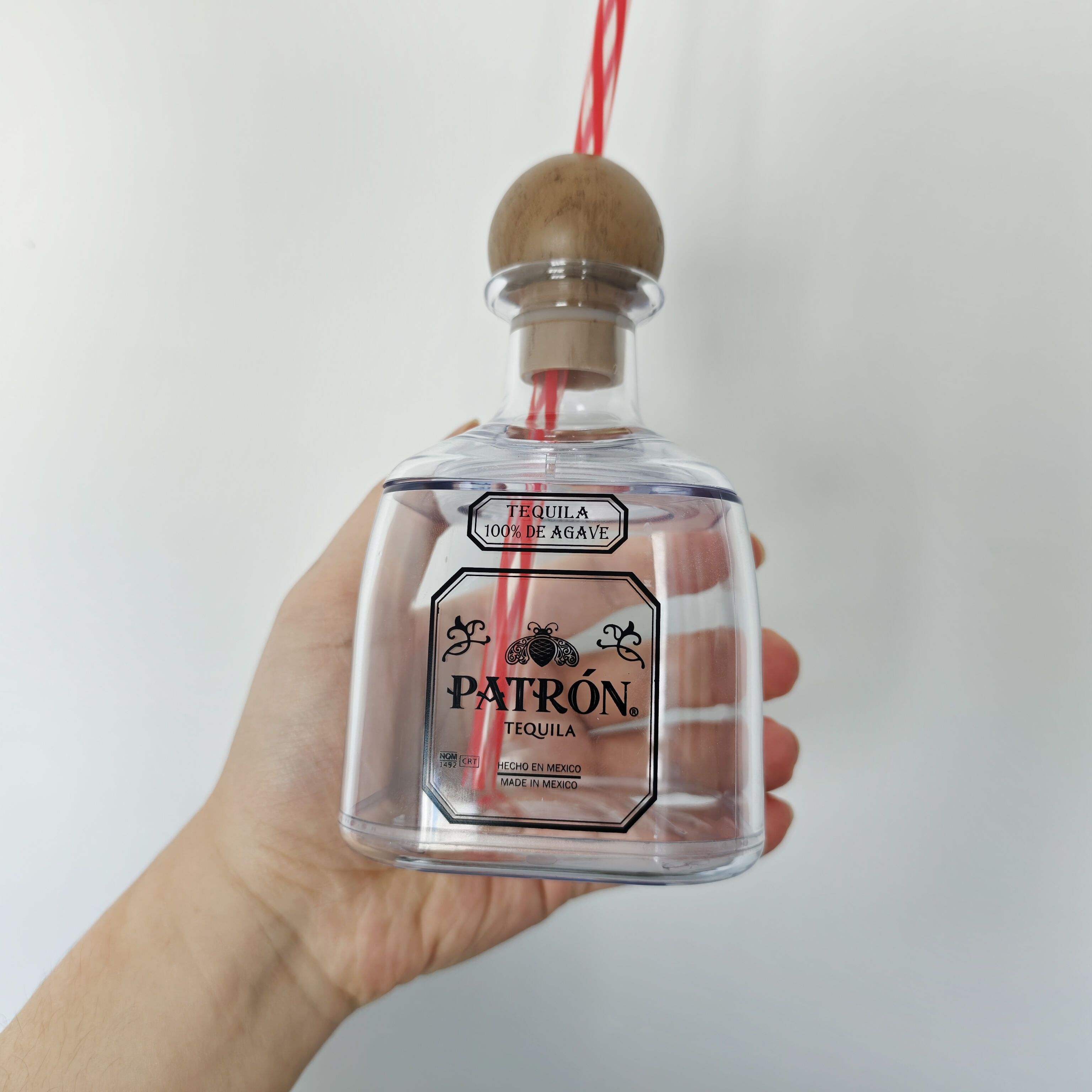 Garrafas Mini Patron Reutilizáveis de 375ml Garrafas Plásticas de Tequila com Tampa de Cortiça